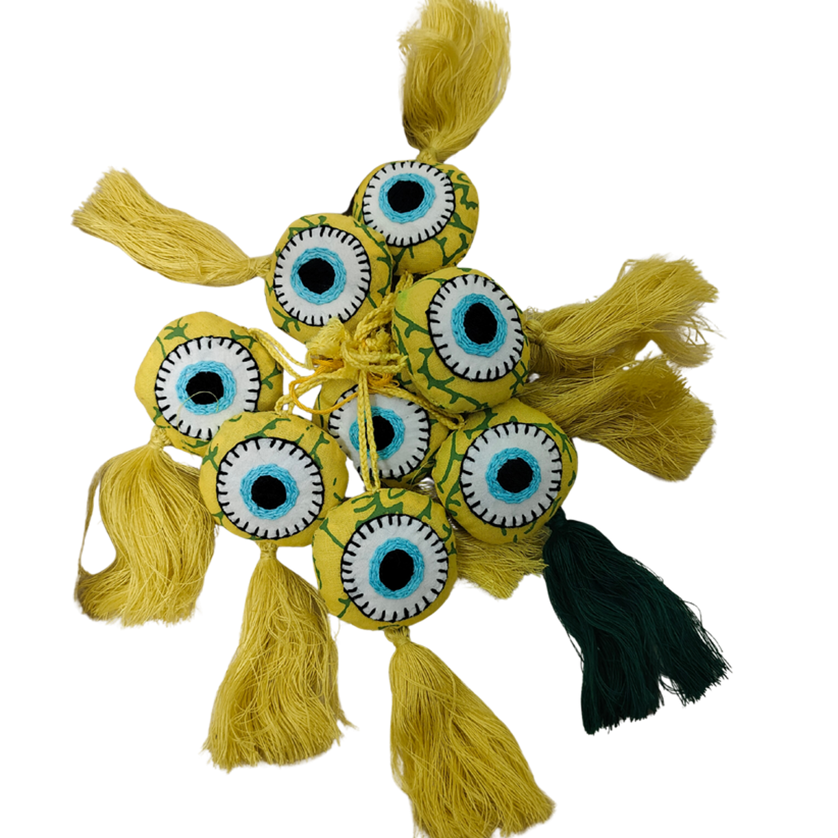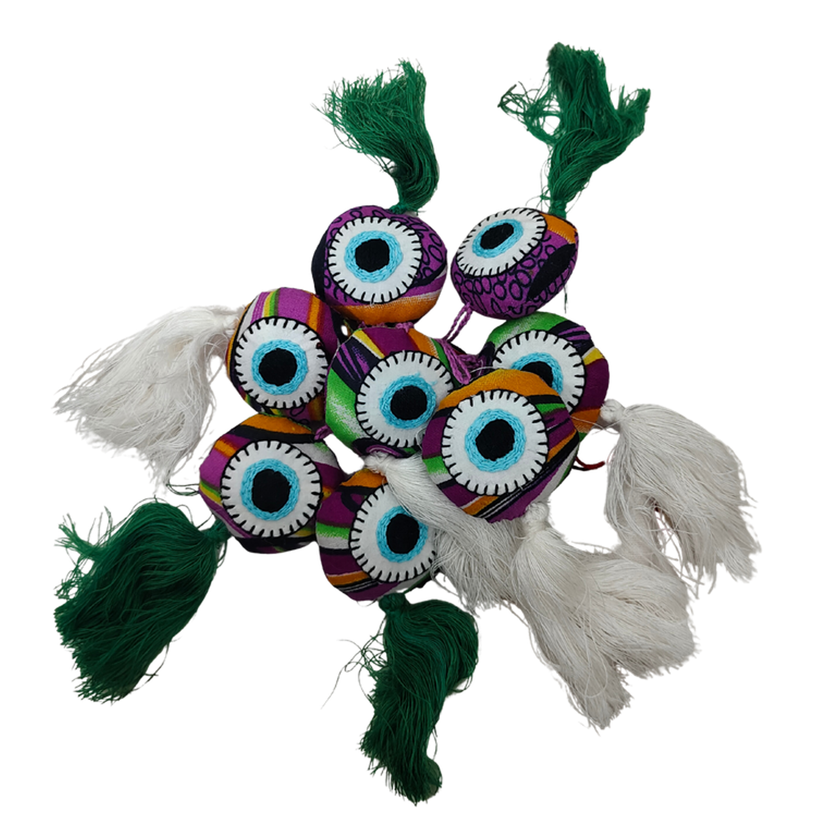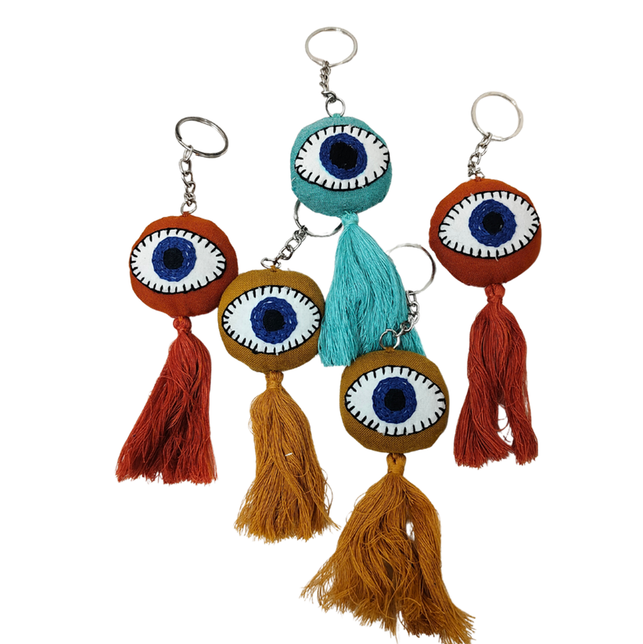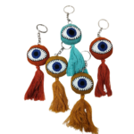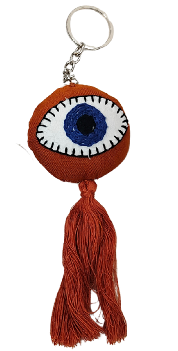 Handcrafted using upcycled fabric, our Evil Eye Charm adds colour, character, and a touch of traditional symbolism to your everyday essentials. Each charm features a soft, layered eye motif with long tassels, making it both decorative and meaningful.